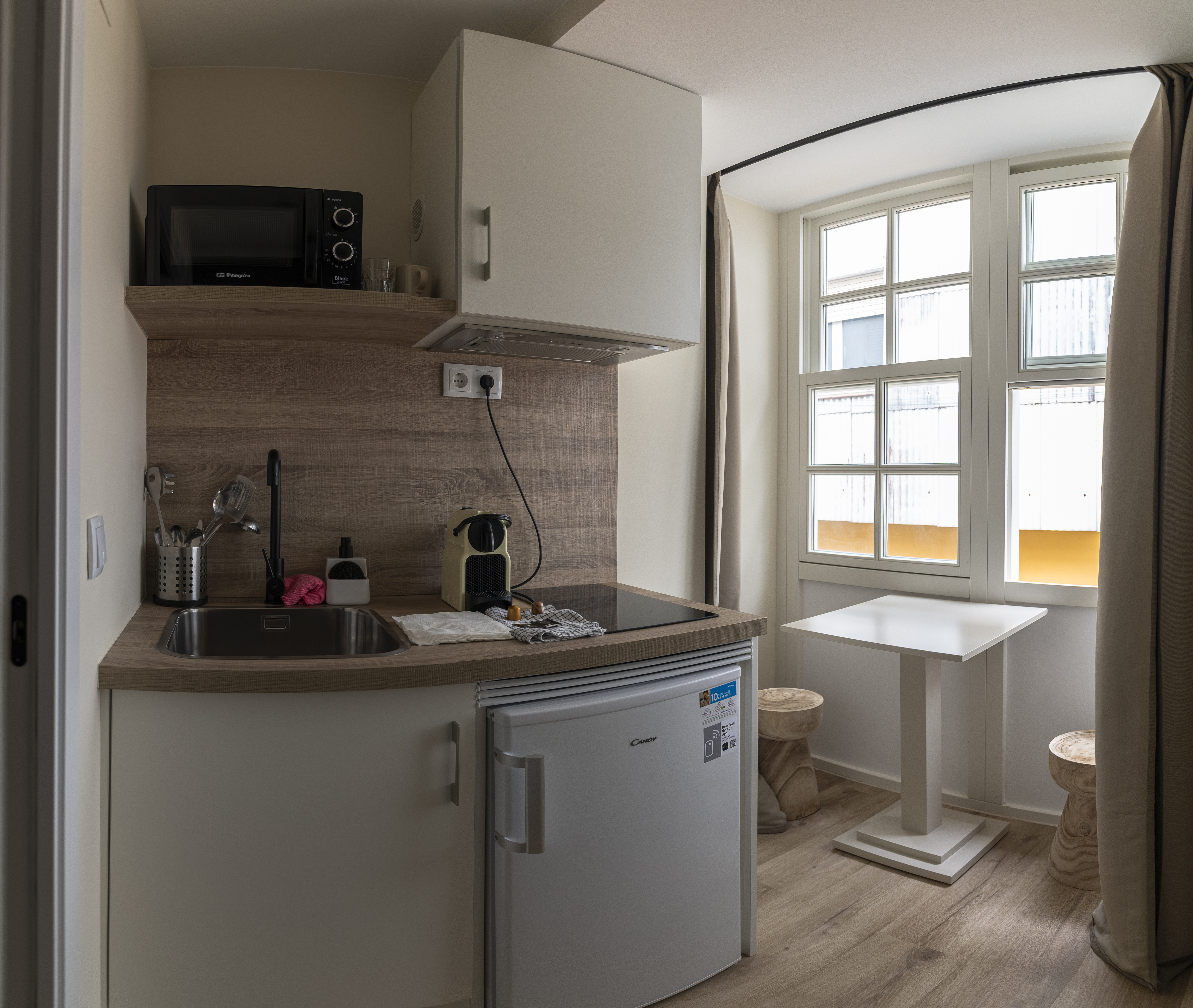 Tienda/bar propia con productos gourmet gallegos y una pequeña carta de desayuno y picoteo.